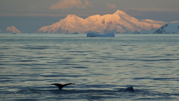 A pod of whales, taken at sunset in the Antarctic Peninsular from the expedition ship "Academik Joffe" in 2010