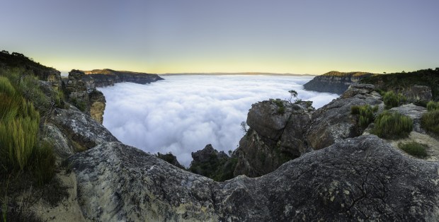 The Megalong Valley in the Blue Mountains is turned into a sea of cloud on a beautiful morning in May.