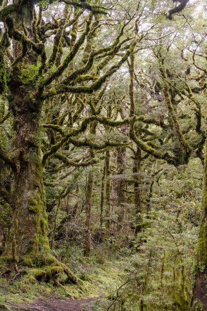 On a cool afternoon during the Lake Waikaremoana Track in the region of Te Urewera, in the North Island. Along its highest ridge, you find yourself in a forest covered in moss. And once you get a moment out of the fog, you hear every branch dripping with water as if the moss itself, creates the rain.