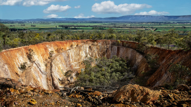 Man has arrived at this once beautiful destination and then decided there was money to be made. All that's left now is a hole on the ground, but look how nature is reclaiming the land again. Across in the distance is beautiful green land.