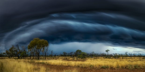 Driving outback Queensland I ran into a storm cell. It was extremely windy and just after I took this panoarama image I got caught in the storm with large hail.